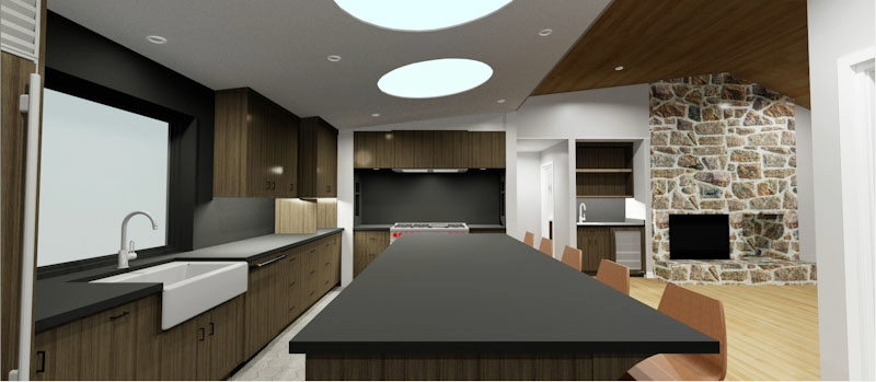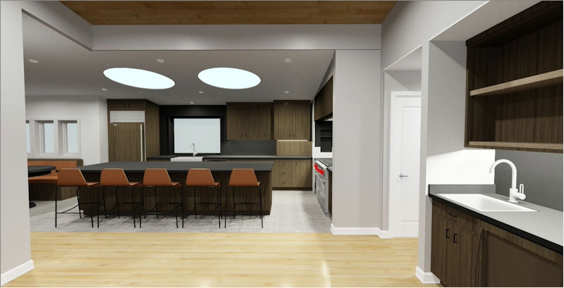 The original kitchen appliances were failing, including a refrigerator that had quietly turned into pantry storage. The primary bathroom felt awkward and disconnected, and finishes throughout the home were overdue for an update. They partnered with Mountainwood Homes to guide a whole-home remodel that respected what already worked, like the round kitchen skylights and banquet footprint, while thoughtfully reworking the spaces that didn’t